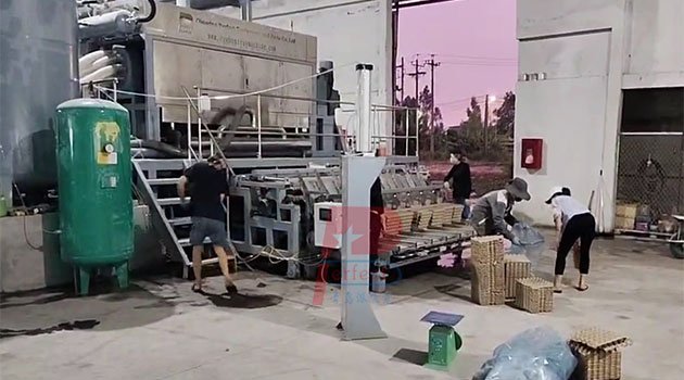 Jan 2ed, 2025, one of our Indonesia client purchased 9000-10000 pieces per hour automatic egg tray production line with metal oven dryer completed installation, and the line use wood chips and biomass pallets as heating source, reduced the egg holder trays average production cost a lot.