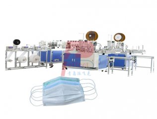 It is mainly used to produce the disposable medical flat face masks automatically: the whole roll of non-woven fabric is driven by rollers after unwinding, and the fabric is automatically folded and hemmed; the entire length of the bridge of the nose is pulled and unrolled. Welded to the seal, then passed through the ultrasonic side seal, cut and shaped by a cutter; conveyed the mask to the two mask earband welding stations through the assembly line, and finally formed the mask by ultrasonic welding; when the mask was made, it was conveyed through the assembly line to flat belt line for collection.