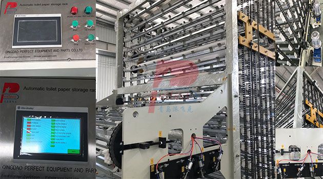 May, 9th, 2018, one of our Mexico client purchased 200 pieces capacity automatic toilet rolls storage rack finished production and tested well before shipment, the storage rack can connect with 2 sets tissue paper rewinding machine, and equipped with 4 output channels, can supply 2 sets double channels toilet rolls log saw; The PLC and other electric parts used AB and imported brands, more reliable and more easier for clients to maintain in the future !